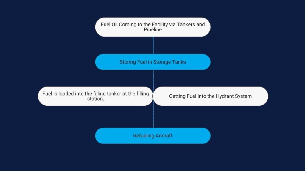 In our fuel bunkering processes, we deliver fuel obtained from STAR and TÜPRAŞ refineries to our airport facilities via sea or land transportation. The fuel transported by road or through the hydrant pipeline is supplied to aircraft through tankers or dispensers. We provide reliable services to a wide range of operators, including commercial, cargo, general aviation, private, and military flights.